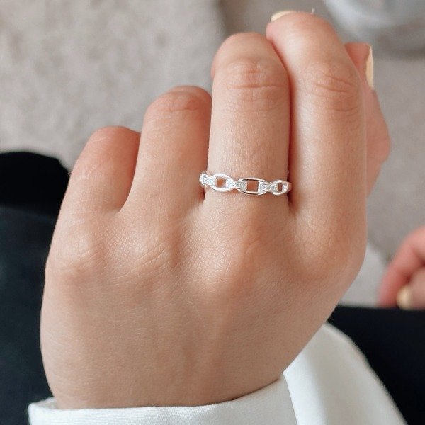 Diseño: Anillo en forma de cadena con detalles en micro cubic cristal