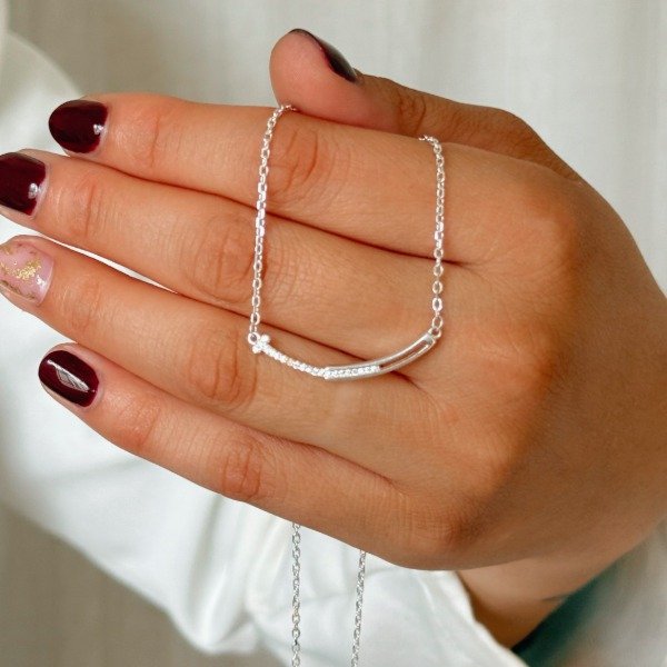 Diseño: Cadena con forma encorvada como una sonrisa con detalles en micro cubic cristal