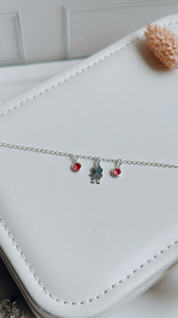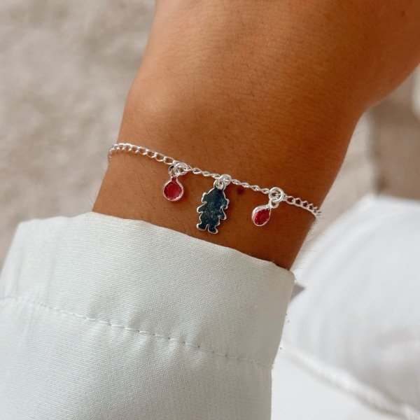 Diseño: Pulsera con dije de nena y dijes colgando de cristal rosa