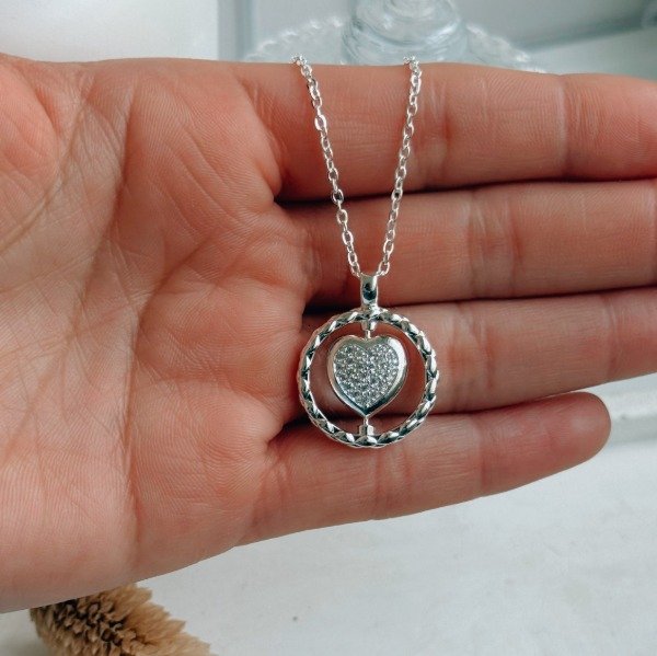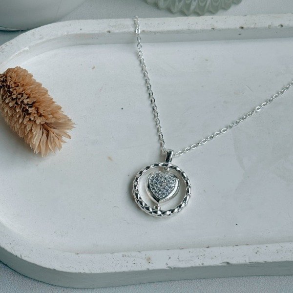 Diseño: Collar con dije en forma circular y corazón en el centro con detalles en micro cubic cristal