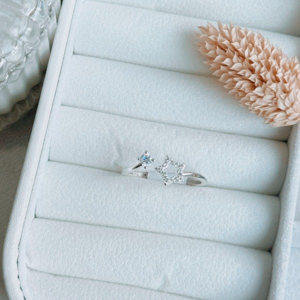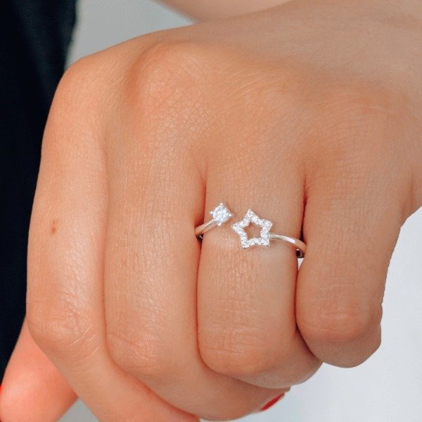 Diseño:Anillo estrella con microcubic y cubic cristal en forma circular