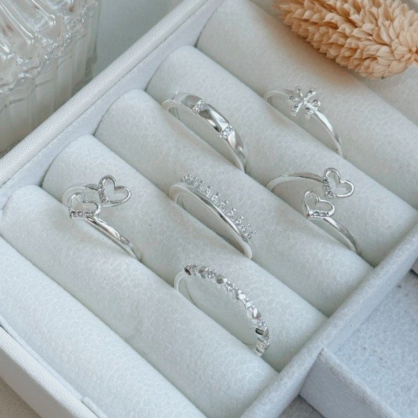 Diseño: Anillo regulable con un corazón calado en cada extremo y detalles en micro cubic cristal