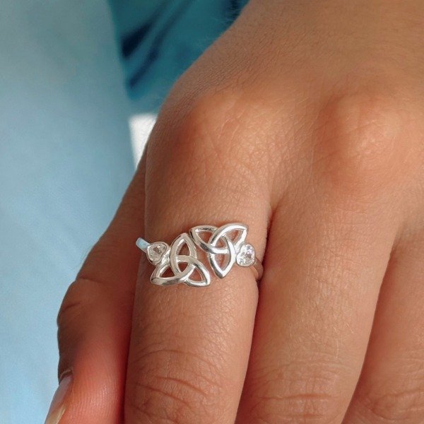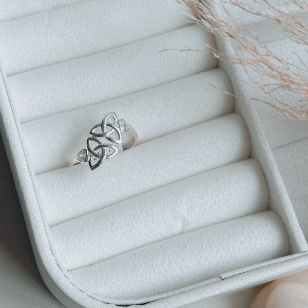 Diseño: Anillo regulable en forma de triqueta con detalles en cubic cristal