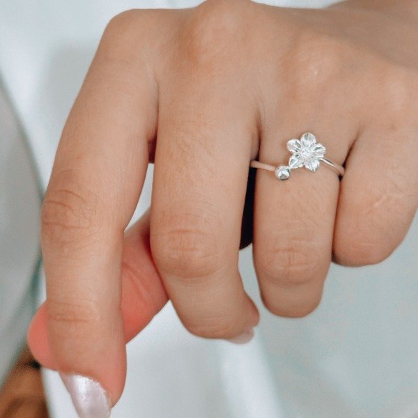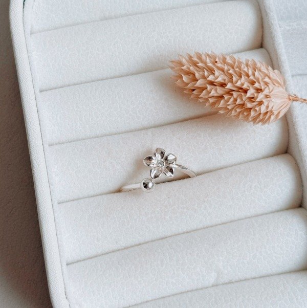 Diseño: Anillo con forma de flor y detalle en micro cubic cristal en el centro de la flor