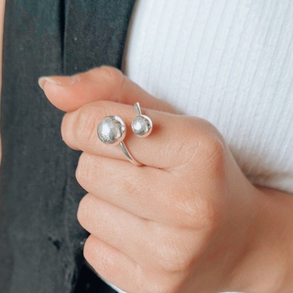 Diseño: Anillo con dos bolas de plata en diferentes tamaños