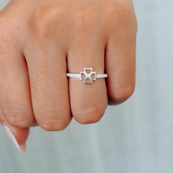 Diseño: Anillo en forma de trébol con detalles en micro cubic