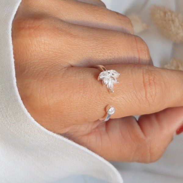 Diseño: Anillo regulable con forma de hoja en cubic cristal