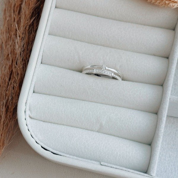 Diseño: Anillo en forma de cinto doble con detalles en cubic cristal