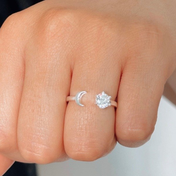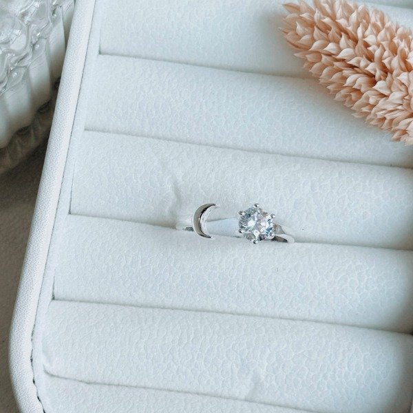 Diseño: Anillo con forma de luna lisa y cubic cristal en forma circular
