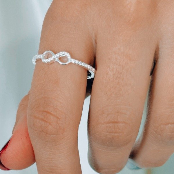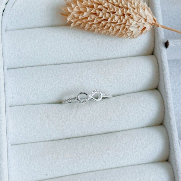 Diseño: Anillo con forma de infinito y detalles en micro cubic cristal