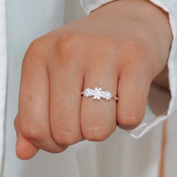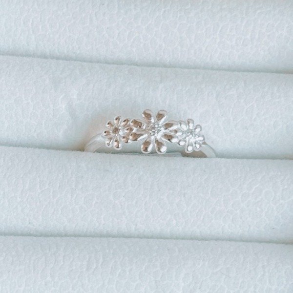 Diseño: Anillo en forma de tres margaritas con detalle en micro cubic cristal