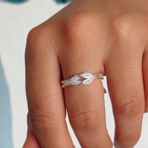 Diseño: Anillo en forma de nudo con detalles micro cubik