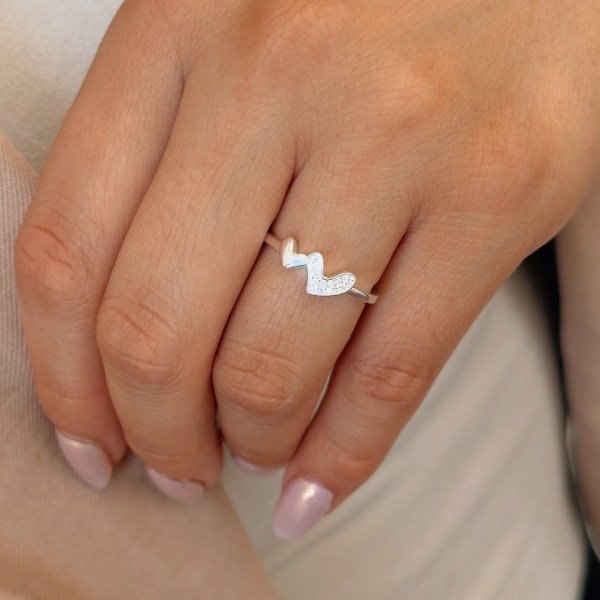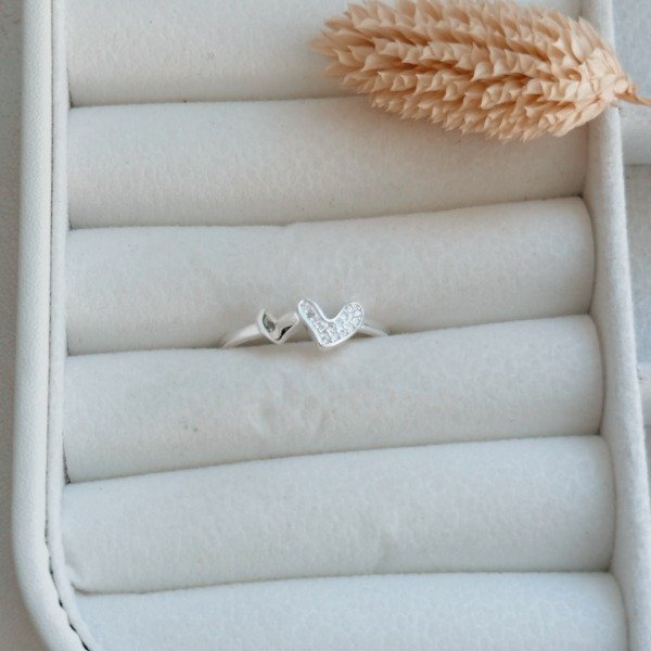 Diseño: Anillo con dos corazones uno con detalles micro cubic
