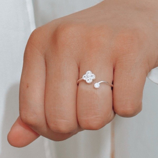 Diseño: Anillo con forma de flor y detalles en cubic cristal