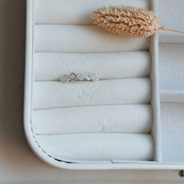 Diseño: Anillo en forma de van cleef con detales en micro cubic
