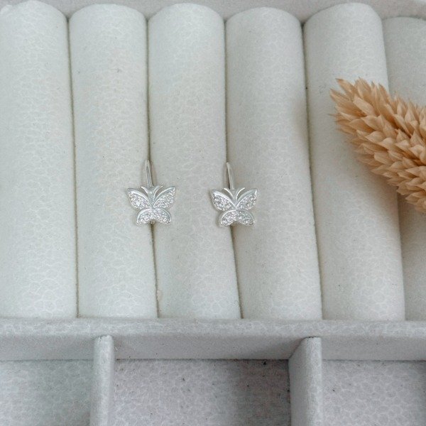 Diseño: Aros argollas con cierre brisura en forma de mariposa con detalles en micro cubic