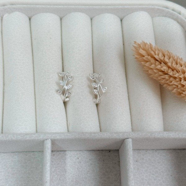 Diseño: Aros argollas con forma de enredadera y detalles en micro cubic
