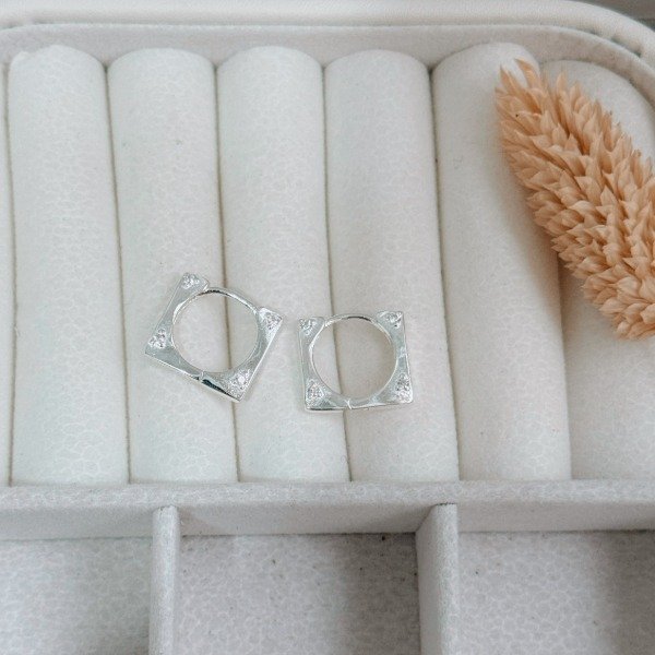 Diseño: Aros argollas en forma cuadrada con detalles en cubic cristal
