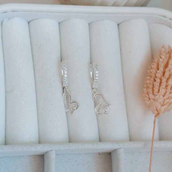 Diseño: Aros argollas con corazones colgantes con detalles en micro cubik