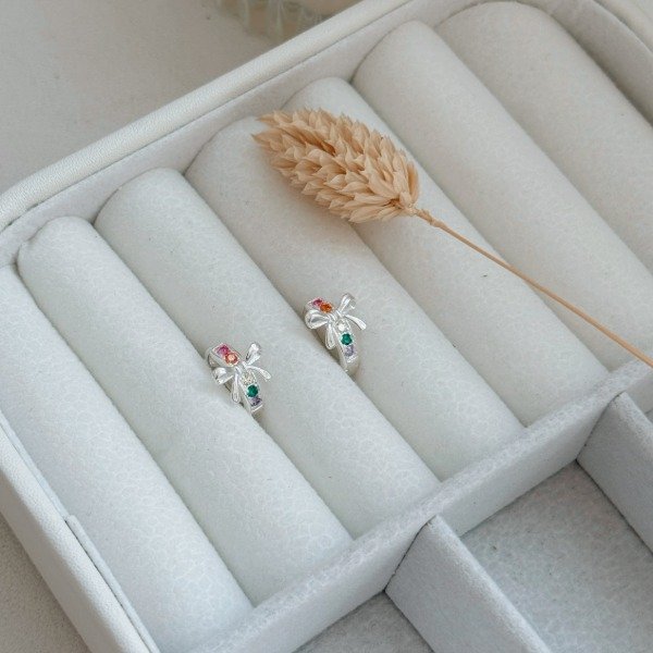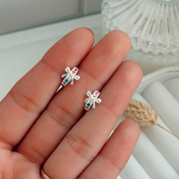 Diseño: Aros argollas en forma de moño con detalles en micro cubic de colores