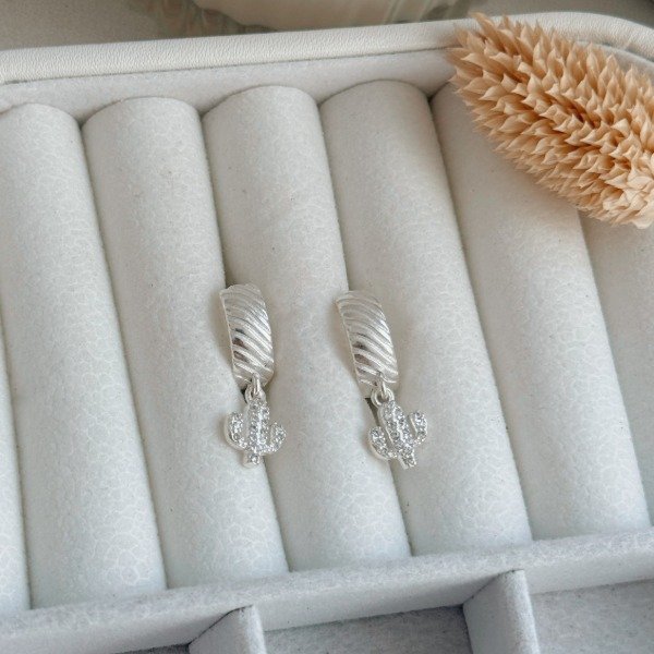 Diseño: Aros argolla con colgante en forma de captus con detalles micro cubic