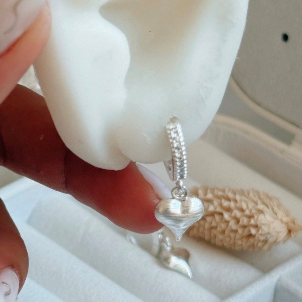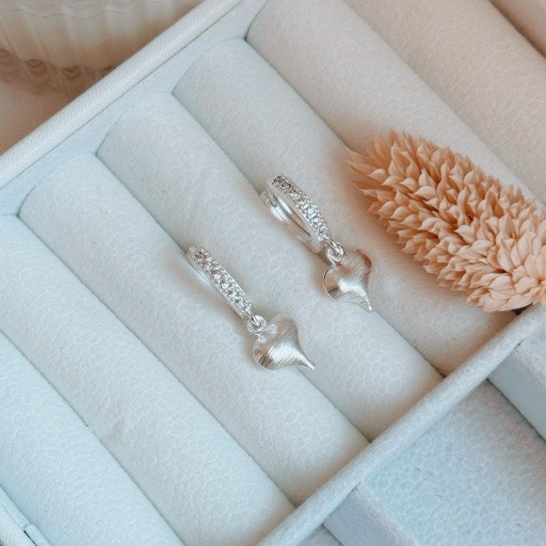 Diseño: Aros arollas con corazones colgantes y detalles micro cubik cristal