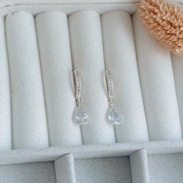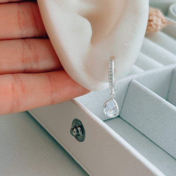 Diseño: Aros argolla con dije en forma de gota cristal y detalles en micro cubic