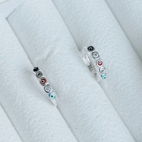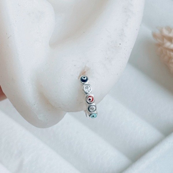 Diseño: Aros argolla con ojos turcos esmaltados y detalles en micro cubic cristal