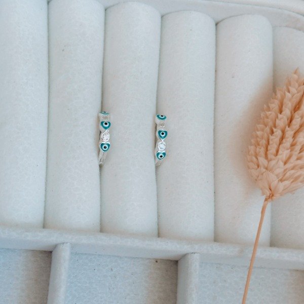 Diseño: Aros argollas con ojo turco en forma de corazon y detalles en cubik cristal
