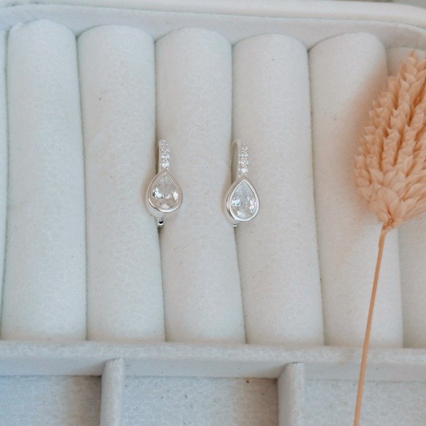 Diseño: Aros argollas con cierre brisura con forma de gota con cubic cristal y detalles en micro cubic