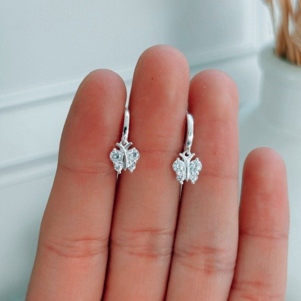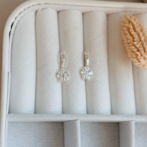 Diseño: Aros argollas colgantes en forma de mariposa con detalles en cristal