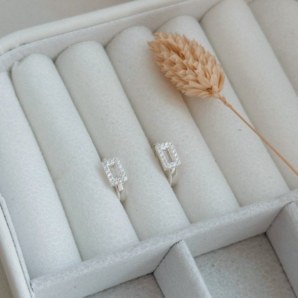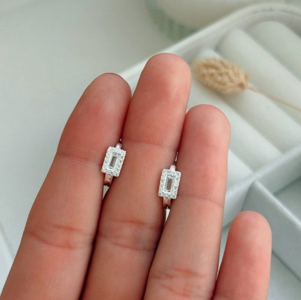 Diseño: Aros argollas en forma de cuadrado con detalles micro cubic cristal