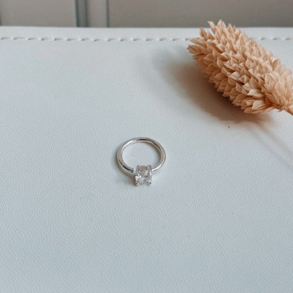 Diseño: Aro argolla lisa con cubic cristal en forma circular