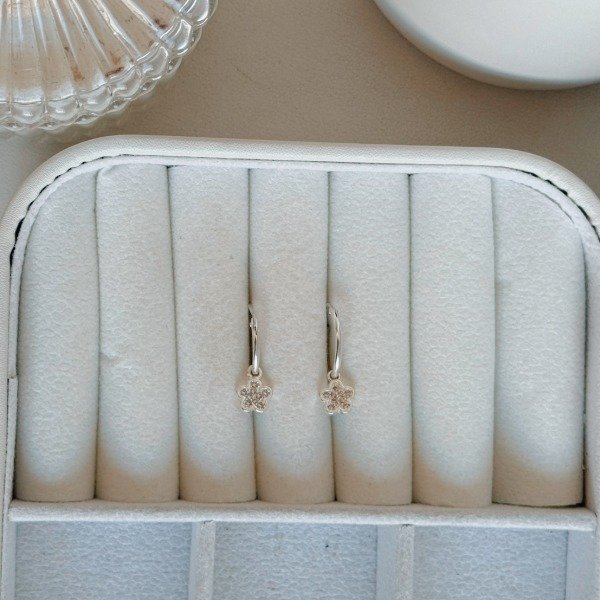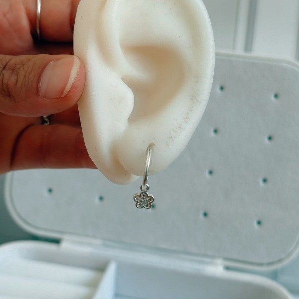 Diseño: Aros argollas con cubic colgante en forma de flor