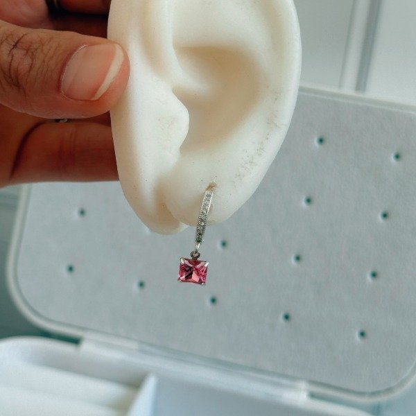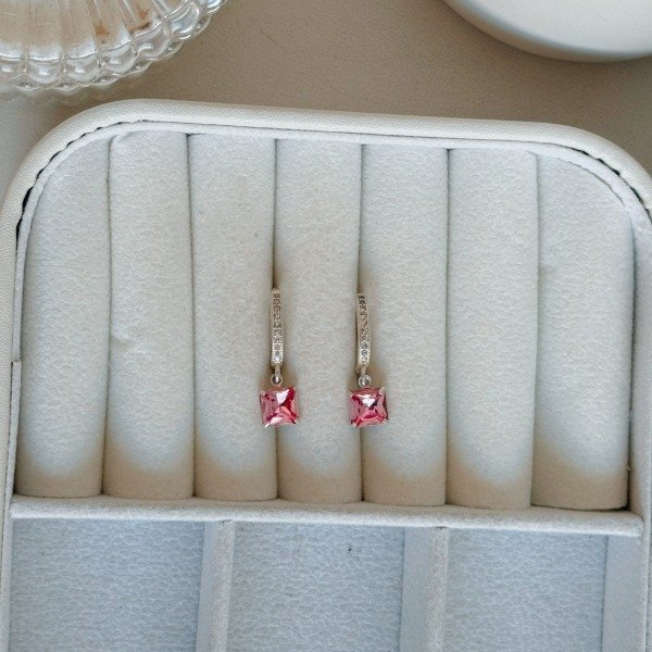 Diseño: Aros argollas con cubic colgante rosa en forma de cubo