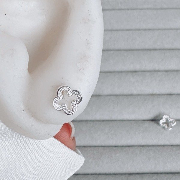 Diseño: Aros pasantes con forma de cruz calada y detalles en micro cubic cristal