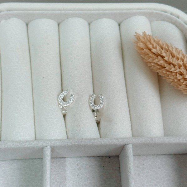 Diseño: Aros pasantes con forma de herradura y detalles en micro cubic cristal