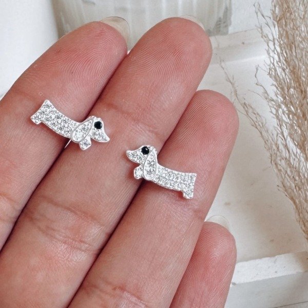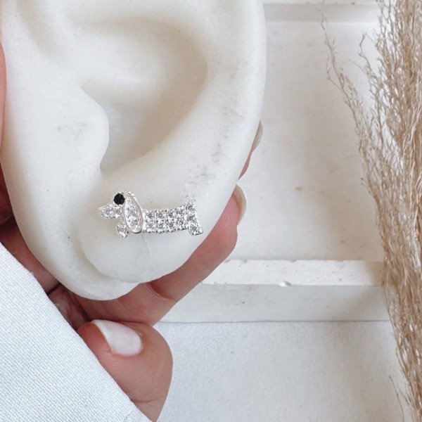 Diseño: Aros pasantes en forma de perro salchicha en micro cubic cristal