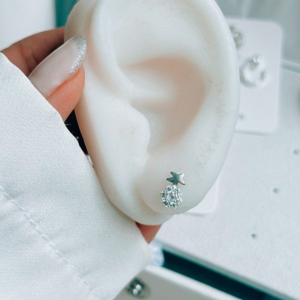 Diseño: Aros pasantes en forma de estrellas y flor con micro cubick