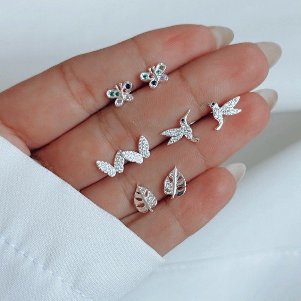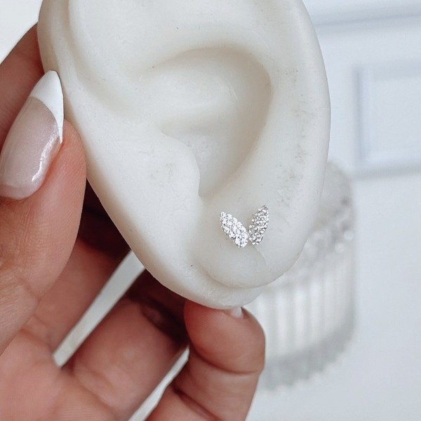 Diseño: Aros pasantes en forma de mariposa con detalles en micro cubic cristal