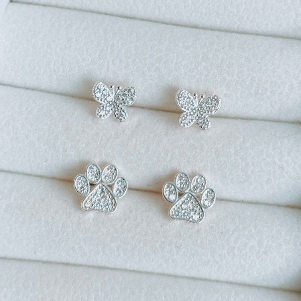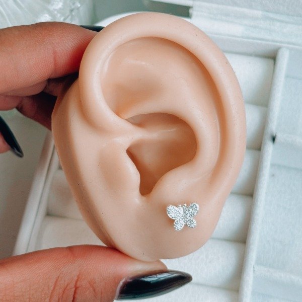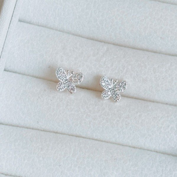 Diseño: Aros pasantes en forma de mariposas con micro cubic cristal