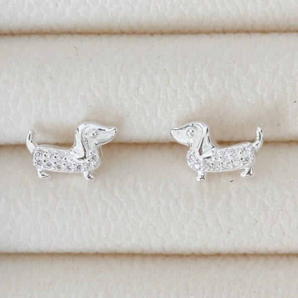 Diseño: Aros pasantes en forma de perrito con detalles en micro cubic cristal