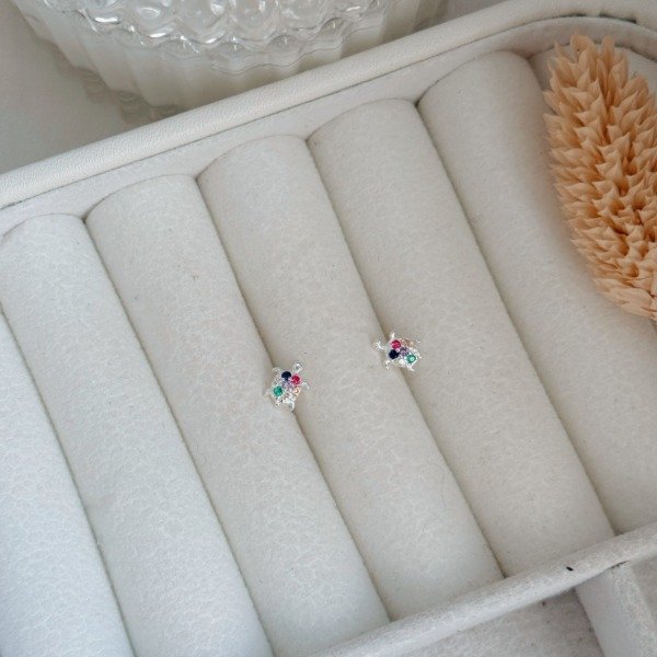 Diseño: Aros pasantes en forma de tortugas con detalles en cubic de colores