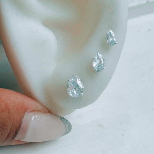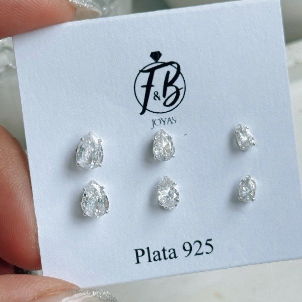 Diseño: Aros pasantes en cubic cristal con forma de gota