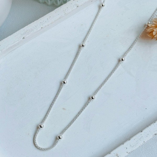 Diseño: Cadena canasta con bolitas de plata
