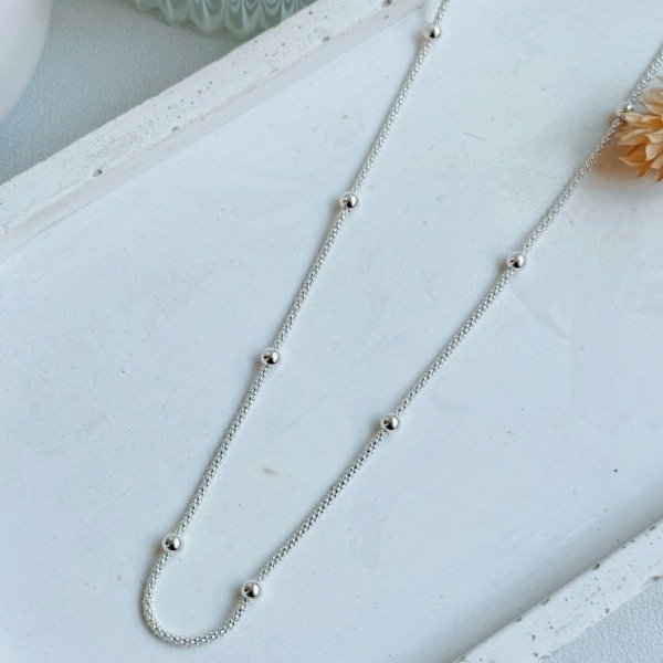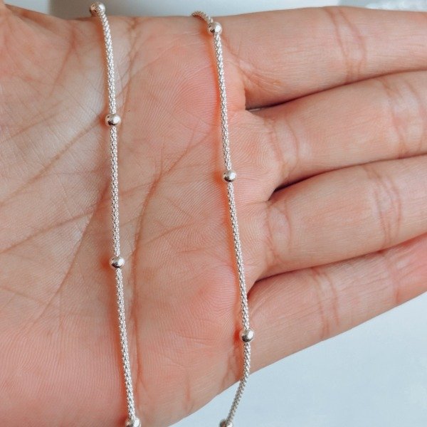 Diseño: Cadena tipo canasta con bolitas de plata