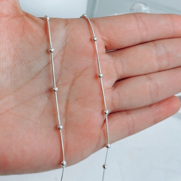 Diseño: Cadena estilo cola de rata con bolas de plata