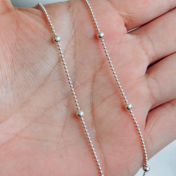Diseño: Cadena con micro bolitas continuas y perlas en plata