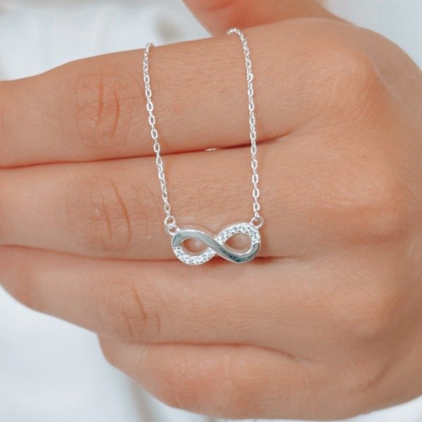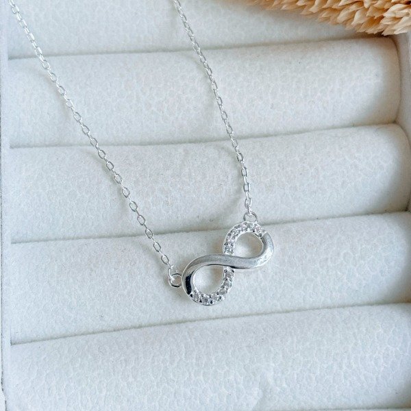 Diseño: Cadena con dije en forma de infinito con detalles en micro cubic cristal