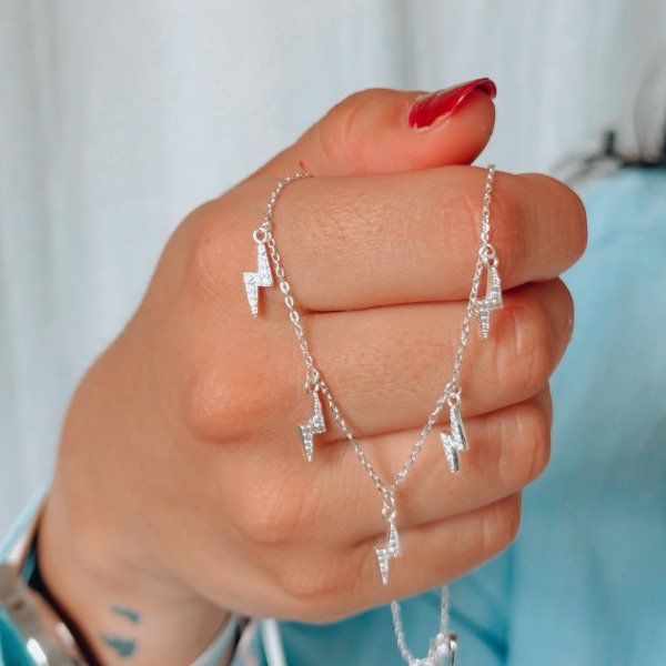 Diseño: Cadena con dijes en forma de rayitos con micro cubick
